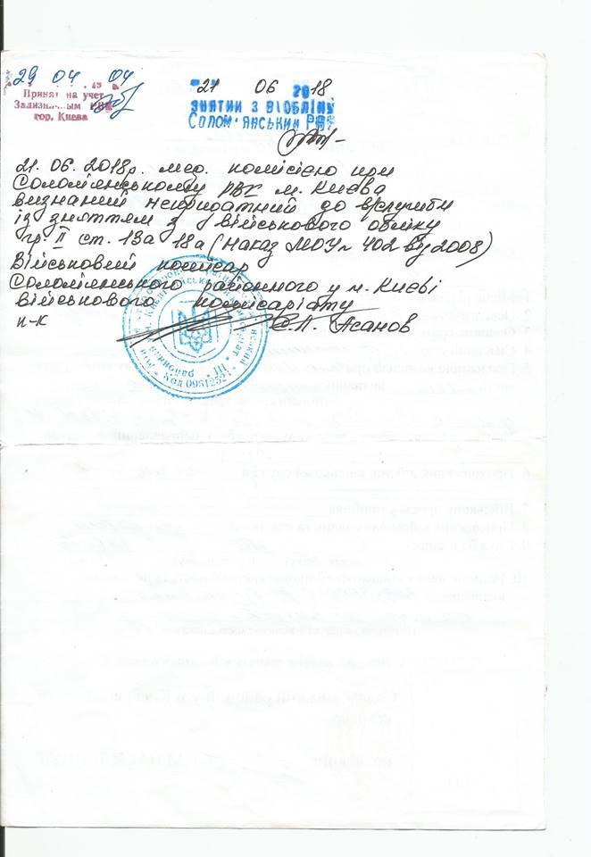С этими документами ее направили к замкомиссара Соломенского военкомата, начальнику мобилизационного отдела Александру Леонидовичу Майбороде.