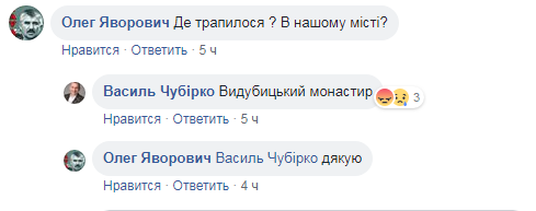 В комментариях отмечается, что инцидент произошел возле Выдубицкого монастыря, однако Чалапчий лично об этом не упоминал.