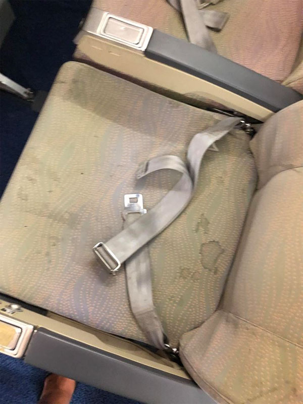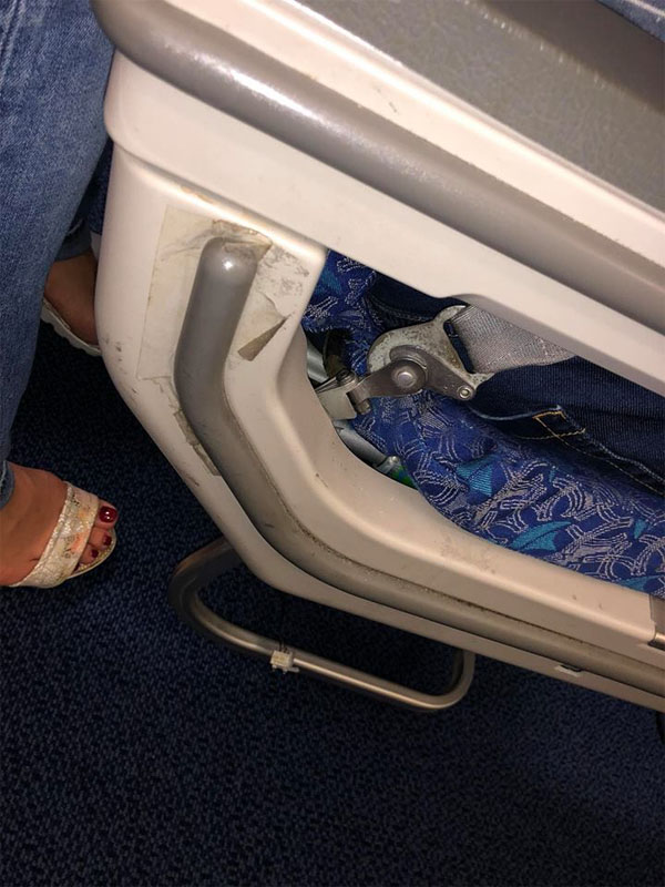 «Вот такой „самолет-скотовоз“ от YanAir нам достался в Шарм и обратно… Сарай с крыльями от YanAir, номер рейса KUP 5301 и 5302. Все грязное, поломанное, везде торчат провода, седушки болтаются и не фиксируются и апогей: в самолёте разные сидения, вы такого ещё не видели… просто разные по цвету, дизайну и форме… YanAir — это просто позор!», — прокомментировал фото пользователь Владимир Соболевский в Facebook.