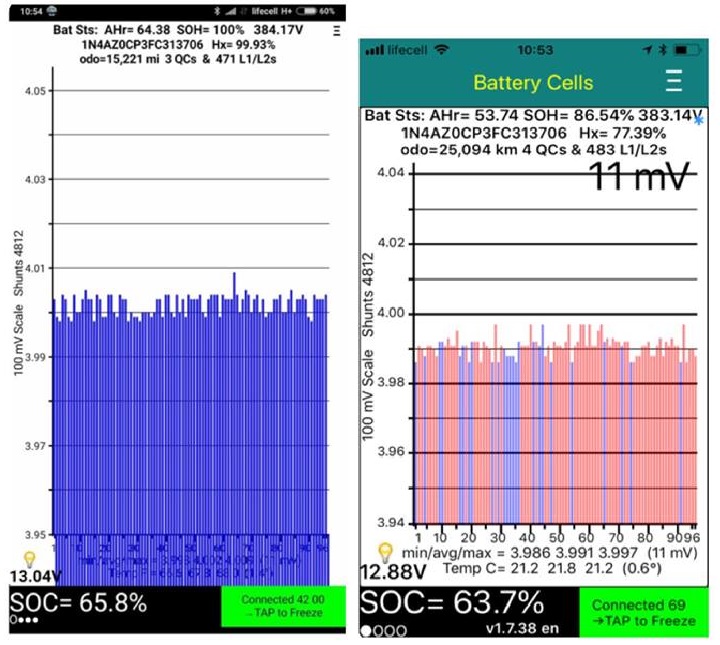 «Когда я давал залог, я видел показатели 64 А·ч в батарее и получал гарантии, что так оно и есть. А уже вечером после расчета, получив авто, увидел 58 А·ч. На следующий день 56, через день — 53 А·ч, а сейчас еще меньше. Для понимания, Leaf только что сошедший с конвейера в первый день жизни имеет 67 А·ч», — рассказал Autonews.ua Михаил Плужников.