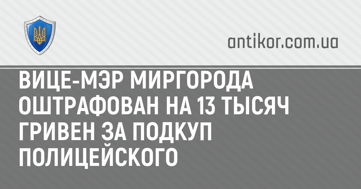 Вице-мэр Миргорода оштрафован на 13 тысяч гривен за подкуп полицейского