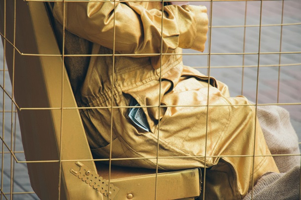 Инсталляция представляет собой железную клетку высотой примерно 1,5 м с манекеном внутри, который олицетворяет коррупционера. На груди у него висит табличка с надписью: «Взяточник», а из карманов торчат американские доллары.