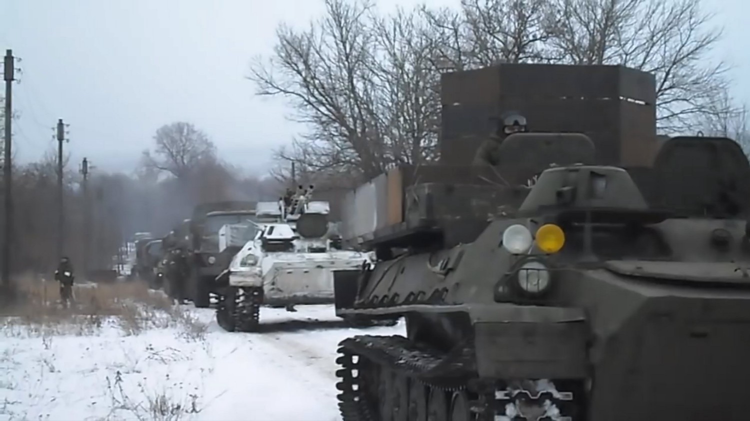 В сети появилось видео, снятое зимой 2014 - 2015 гг., на котором видно, как бойцы ЧВК "Вагнера" едут в направлении Дебальцево на Донетчине, чтобы принять участие в боях.