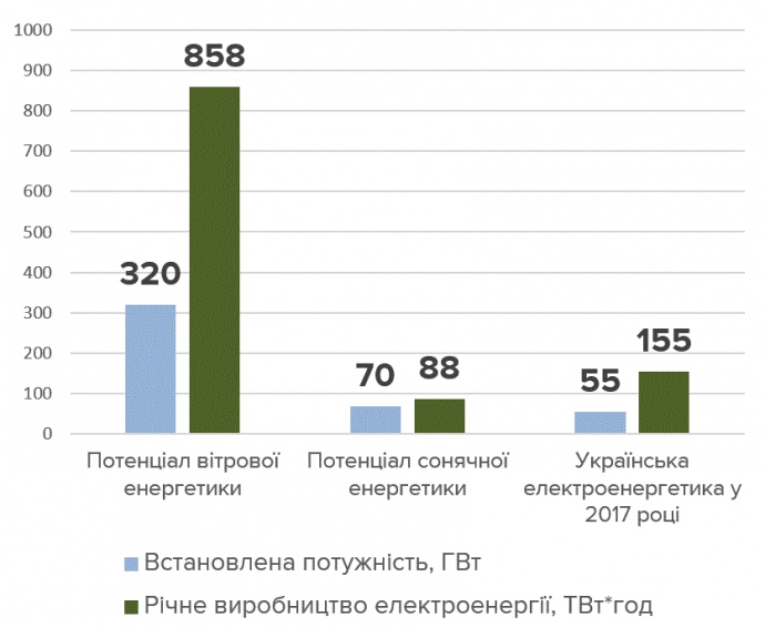 Сколько может Украина производить электроэнергии из ветра и солнца