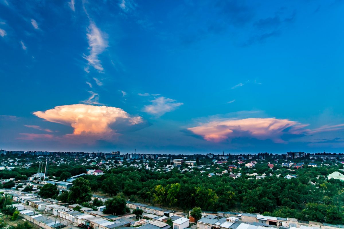 В небе над Николаевом местные жители заметили необычное облако розового цвета. По своей форме оно похоже на так называемый «ядерный гриб». Снимки опубликовал в Facebook Денис Сисин.