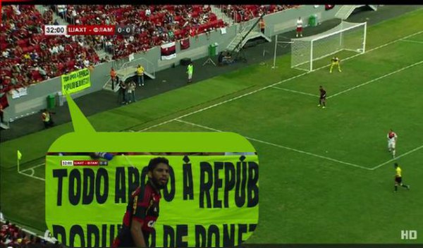 На товарищеском матче «Фламенго» - «Шахтер» (0:0), который проходил на «Национальном» стадионе в Бразилиа, был вывешен баннер с надписью «Todo apoio a republica popular de Donetsk» («Все мы поддерживаем донецкую народную республику»).