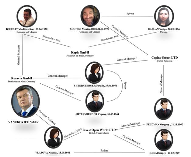РанееСМИ неоднократно сообщали, что Владислав Израилит (Vladislav Seev Izrailit) и его бизнес партнер Максим Слуцкий (Slutski Maxim) отрабатывают для Виктора Федоровича деньги в Германии через Компанию Kapis GmbH, которая специализируется на покупке, продаже, аренде, управлении собственной недвижимости, а также эксплуатации и управлении гостиницами и предоставлением им услуг. Распоряжения по ведению бизнеса отдавались через Наталью Власову, которая, несмотря на юный возраст, была личной помощницей, Виктора Януковича.