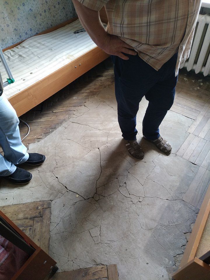 Она добавила, что сфотографировала только две комнаты, но видела и другие на 5-м этаже, а также душ и туалеты, которые в таком же ужасном состоянии. Из нового там разве что входные комнатные двери, а в некоторых комнатах все же установлены пластиковые окна.