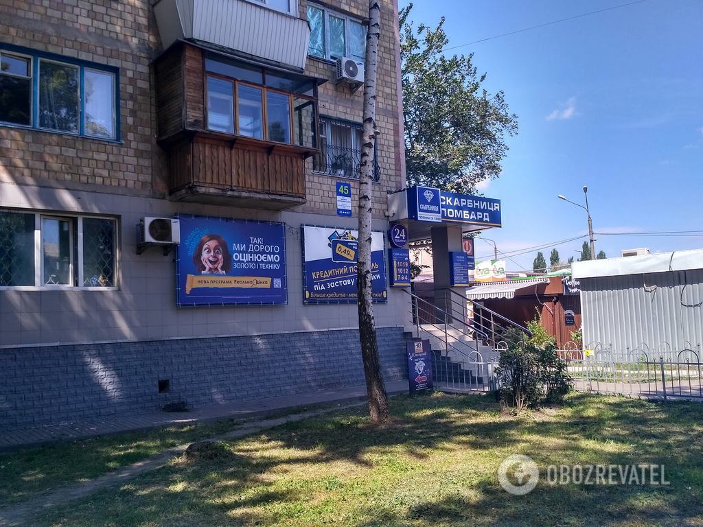 Также отметим, что дом, где произошло ограбление ювелирного магазина, находится на оживленном перекрестке - напротив остановка общественного транспорта, а через дорогу - рынок "Нивки". В этом же доме действуют два ломбарда, поблизости - множество скупок и "Швидко грошi". Такой себе "Шанхай".