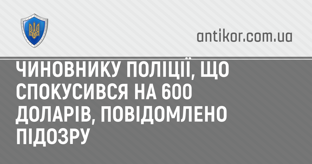 Чиновнику поліції, що спокусився на 600 доларів, повідомлено підозру