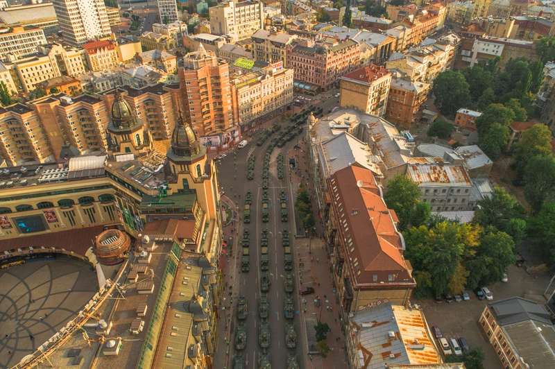Военная техника вышла на улицы Киева: фото репетиции парада с высоты