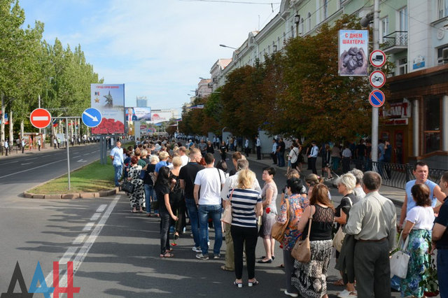 “Вчера начальство обзванивало всех, кого возможно и требовало прибыть к театру с двумя гвоздиками. Многие просто не отвечали на звонок, типа уехали. Остальные с шести утра уже были в Донецке и ждали начала церемонии до 9”, – рассказал дончанин Олег.