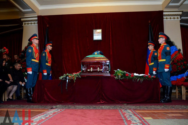 В холле Театра оперы и балета им. Соловьяненко выставлен закрытый гроб с останками Захарченко. Проходящие мимо него преимущественно крестятся, лишь единицы отдают воинскую честь. Усилены меры безопасности: так, большие букеты сразу забирают и относят подальше от гроба, возможно, от страха, что там спрятана взрывчатка.