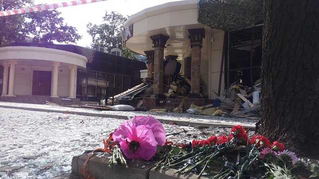 У входа во взорванный ресторан «Сепар» создали импровизированный мемориал — установили фотографию Захарченко, принесли икону, лампадки и цветы. Вокруг ресторана асфальт усеян осколками стекол, кроме того, территория по-прежнему оцеплена, по периметру стоит вооруженная охрана.