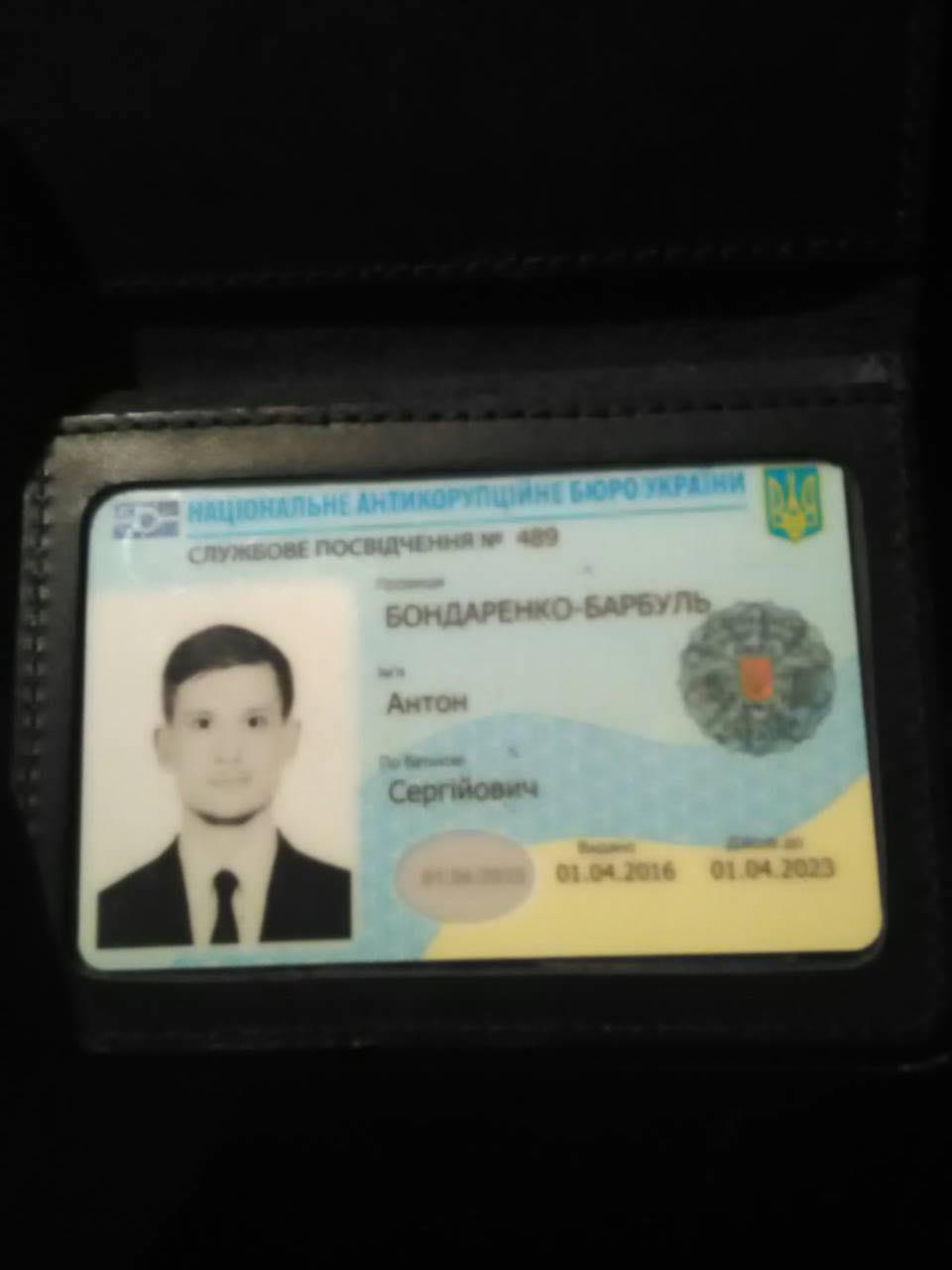 «Поступил рапорт сотрудника ППОП № 1 о том, что 13.09.2018 года в 00:10 ч. по адресу город Киев, Набережное шоссе, возле памятника «Основателям Киева» был замечен автомобиль марки «Škoda», с номерами ВВ5353СВ, в котором на заднем сиденье находился гражданин, увидев служебный автомобиль он заметно занервничал и начал резко двигаться по автомобилю и что-то прятать. Во время проверки документов данным гражданином оказался Бондаренко-Барбуль Антон Сергеевич, 1989 года рождения, который находился в абсолютно неадекватном состоянии, с признаками наркотического опьянения и у которого, при визуальном осмотре автомобиля, на заднем сиденье было обнаружено и изъято полителеновий пакет с веществом растительного происхождения темно-зеленого цвета, внешне похожий на каннабис, приблизительной весом 5 грамм», - сообщается в группе «Антикоррупционная платформа» на странице в Facebook.