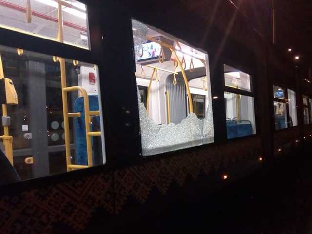 В новом киевском трамвае неизвестные вечером 15 сентября разбили стекла.