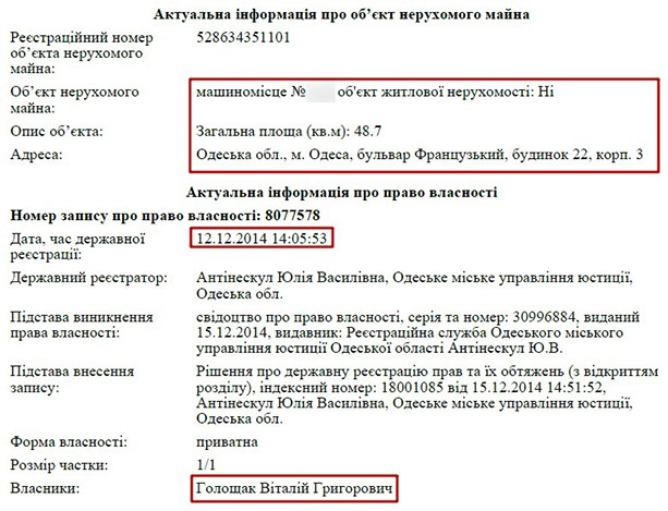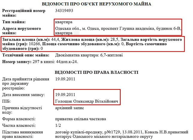 Теги: НерухомістьДекларуванняДеклараціяГолощак ВіталійОдеська область