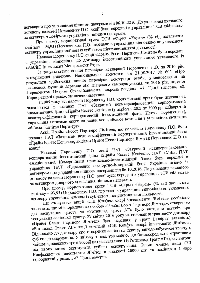 НАПК также отметил, что выгодоприобретателем траста сейчас является лично Порошенко.