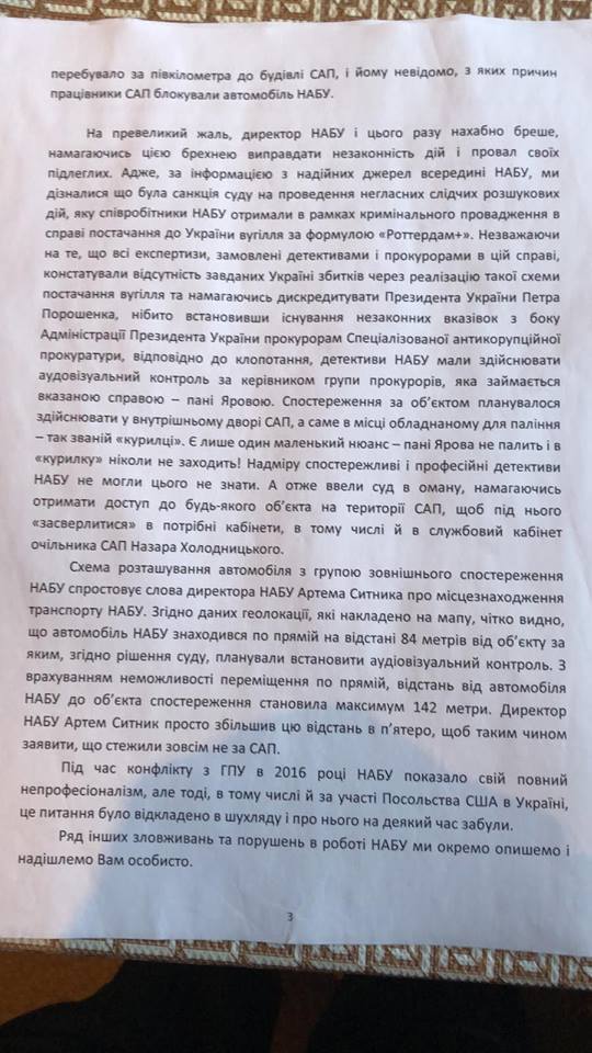 «… щоб в нас відбувалася демократична модернізація, але при тому всьому ми маємо звернути увагу наших західних партнерів, зокрема – американської амбасади, що відповідні консультації мають бути проведені з урахуванням українських реалій. Щоб не було так, що підтримка з боку західних партнерів стала лише прикриттям для успішного збагачення групки корумпованих керівників НАБУ, які просто використовують це прикриття для того, щоб вибудовувати свої схеми»