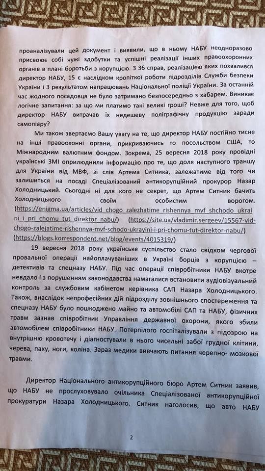 На думку учасників акції, США через своїх представників в Україні невиправдано захищають пана Ситника, не володіючи достатньою інформацією про його біографію та діяльність на посаді.