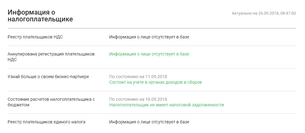 Згідно з аналітичною системою «YouControl», станом на 26.09.2018 компанія не має податкового боргу та не перебуває у стадії ліквідації.