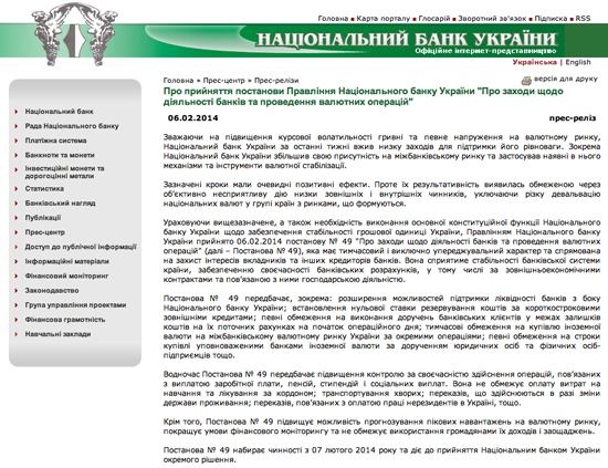 Как сообщается в первом пресс-релизе, с пятницы 7 февраля вступает в силу некое постановление НБУ №49 "О мероприятиях относительно деятельности банков и проведения валютных операций". Документ был тайно утвержден регулятором в четверг, 6 февраля.