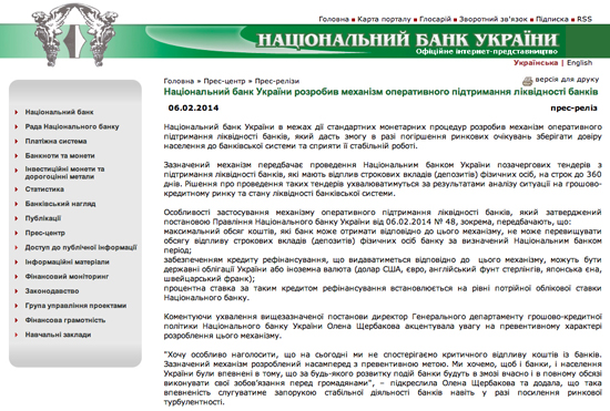 Второй пресс-релиз Нацбанка анонсирует положения еще одного "революционного" документа - постановления №48 от 6 февраля 2014 года. Этим документом НБУ сам себе разрешает более оперативно в ручном режиме рефинансировать банки в случае оттока депозитов.