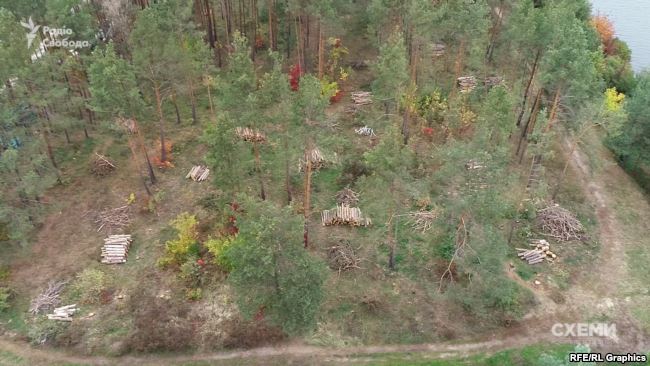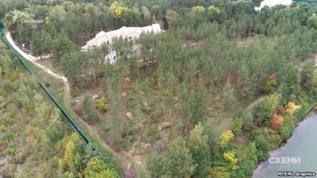 На территории государственного леса в Хотяновке под Киевом возле одного из имений, которые связывают с министром экологии времен беглого президента Виктора Януковича Николаем Злочевским, вырубают деревья.