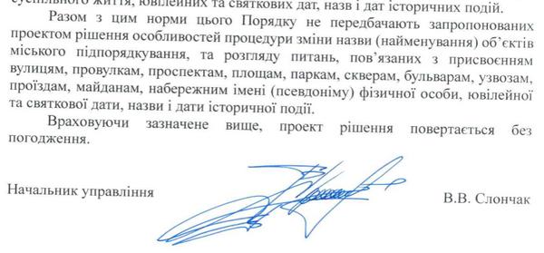 «Після того, як громадські слухання відбулися, до комісії по найменуванням надходять дві пропозиції — результат електронних опитувань і думку громадськості, виявлену на громадських слуханнях. Тоді комісія більш зважено прийматиме рішення по перейменуванням, а остаточне слово належатиме Київській міській раді».