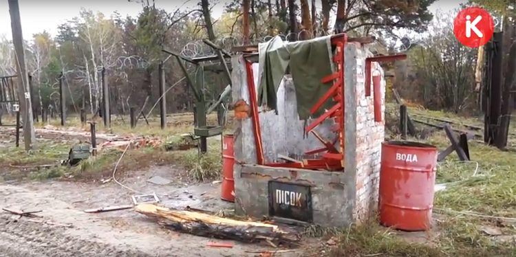 Неподалеку от руин развернут мобильный пункт обогрева. Рядом побитые войной деревья. Дуб, возле которого змеей легло изогнутое, как штопор, железо. Из сосны торчит неразорвавшаяся ракета.