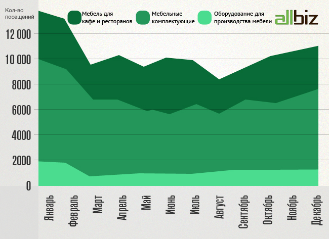"Интерес к оборудованию для изготовления мебели в марте был вдвое ниже, чем в январе, и продолжал снижаться вплоть до июля. Но, начиная с августа, посетители стали всё чаще интересоваться этим оборудованием. Схожая ситуация была и с комплектующими, хотя спрос на них упал не так стремительно и не так существенно (-17,35% в декабре по сравнению с январем)", – прокомментировали данные в Allbiz. В то же время, несмотря на повышение интереса после значительного его падения, выйти на уровень начала года отрасли так и не удалось, хотя предпосылки к этому были.