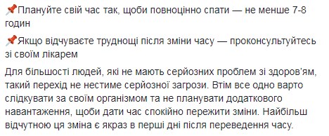 Перевод часов на зимнее время может вызвать дополнительный стресс для организма. Об этом исполняющая обязанности министра здравоохранения Ульяна Супрун написала на странице Facebook.