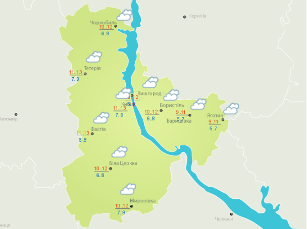 В Киеве 5 ноября без осадков, днем от +11 до +13, ночью от +7 до +9.
