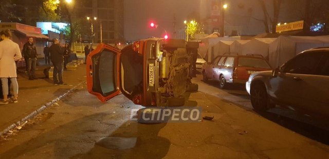 В Киеве пьяная женщина на Mitsubishi врезалась в прицеп и перевернулась