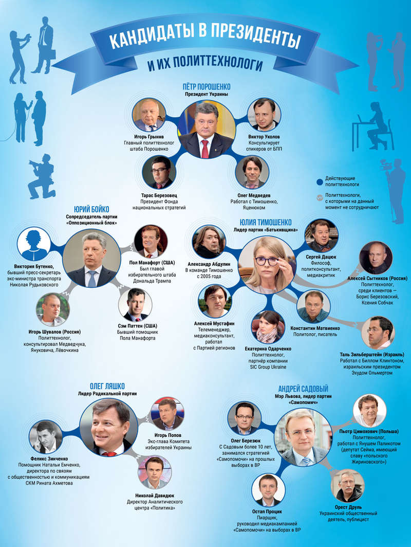 Когда-то один из российских политтехнологов, презентуя стратегию кампании украинскому клиенту, сказал: «Мы вам победу не гарантируем, но без нас вы точно проиграете!». В преддверии президентских выборов Фокус разобрался, кто на этот раз поведет политиков к заветной победе.
