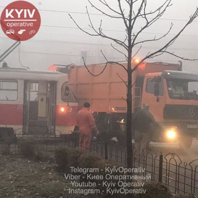 В Киеве из-за сильного тумана столкнулись трамвай и авто коммунальщиков