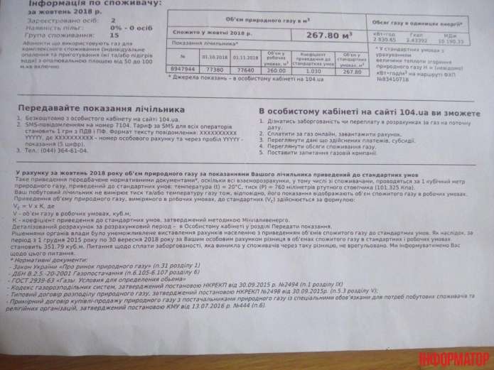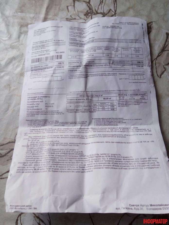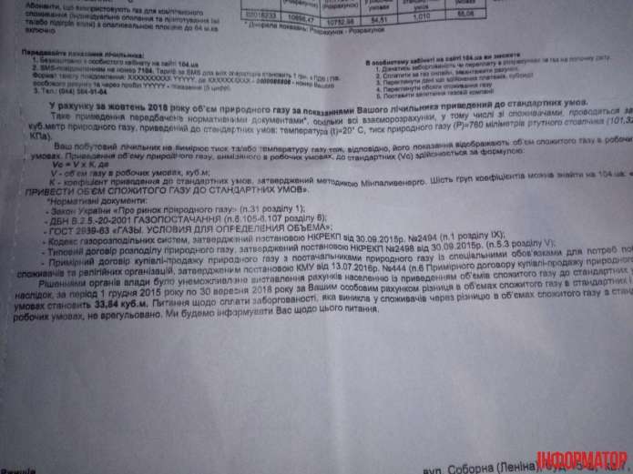 Після публікації ІНФОРМАТОРА щодо нарахування боргів за сплачений газ, люди почали надсилати фото своїх платіжок.