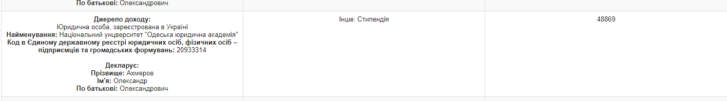 В 2017 году Ахмеров получил 48 тыс. грн стипендии от государственного учреждения, где преподает его жена.