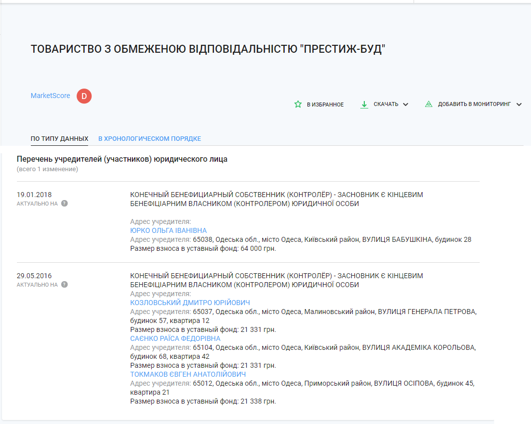 Депутатскую комиссию по вопросам управления имуществом общей собственности территориальных общин области возглавляет Ольга Юрко. Она является представительницей округа, расположенного в самой Одессе. Ее доход 2017 года, согласно декларации, составил 1,75 млн грн. До избрания депутатом Юрко работала заместителем начальника Управления капитального строительства Одесского городского совета и отвечала за развитие территорий и инфраструктуры. В январе 2018-го, по данным аналитической системы YouControl, она стала владелицей ООО «Престиж-буд». До того времени доля предприятия принадлежала Раисе Саенко. В этом году Саенко также подарила Ольге Юрко квартиру в Одессе стоимостью более 156 тыс. грн. Сообщение о существенных изменениях в имущественном состоянии Юрко сделала на сайте НАПК.