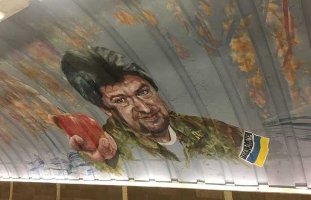 На станции метро «Осокорки» появился новый мурал с украинским добровольцем Владимиром Доносом, который участвовал в боях за Иловайск.