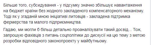 «Думаю, мы могли бы более детально проанализировать такой опыт … Поэтому, приглашаю специалистов по вопросам соцполитики к дискуссии на эту тему с целью разработки соответствующего законопроекта в будущем, – предложил депутат.