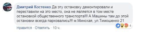 “Да эту остановку демонтировали и переставили на это место, она не является в том месте остановкой общественного транспорта! А Машины там до этой остановки всегда парковались!” – написал он.