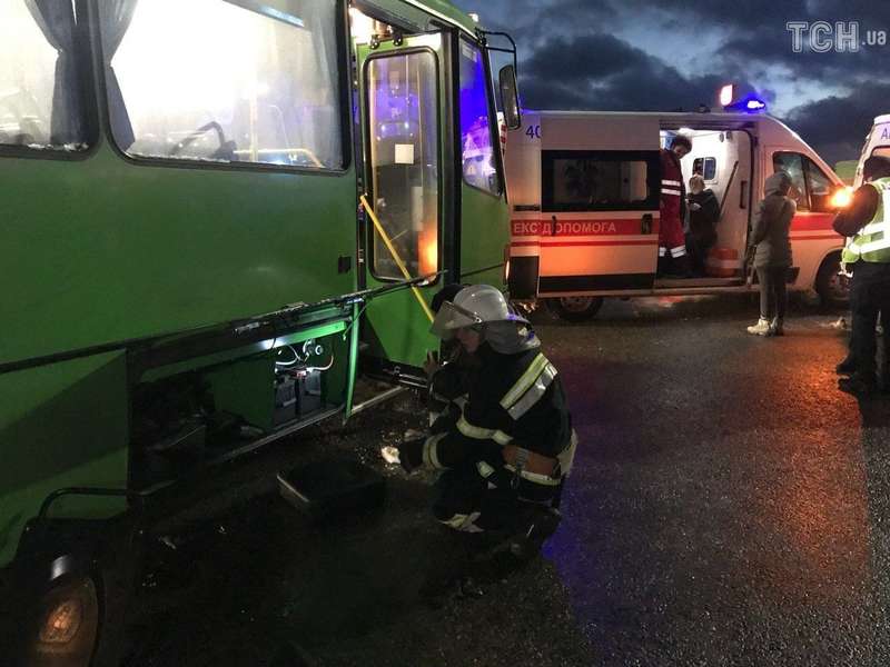 По его словам, ДТП произошло на трассе в сторону Киева. Автобус отъезжал от остановки села Счастливое, когда грузовик врезался в общественный транспорт.