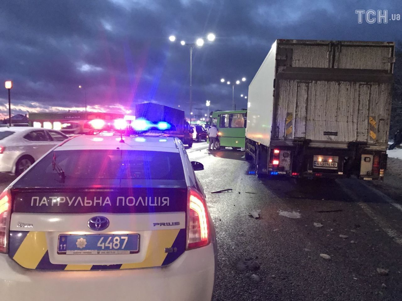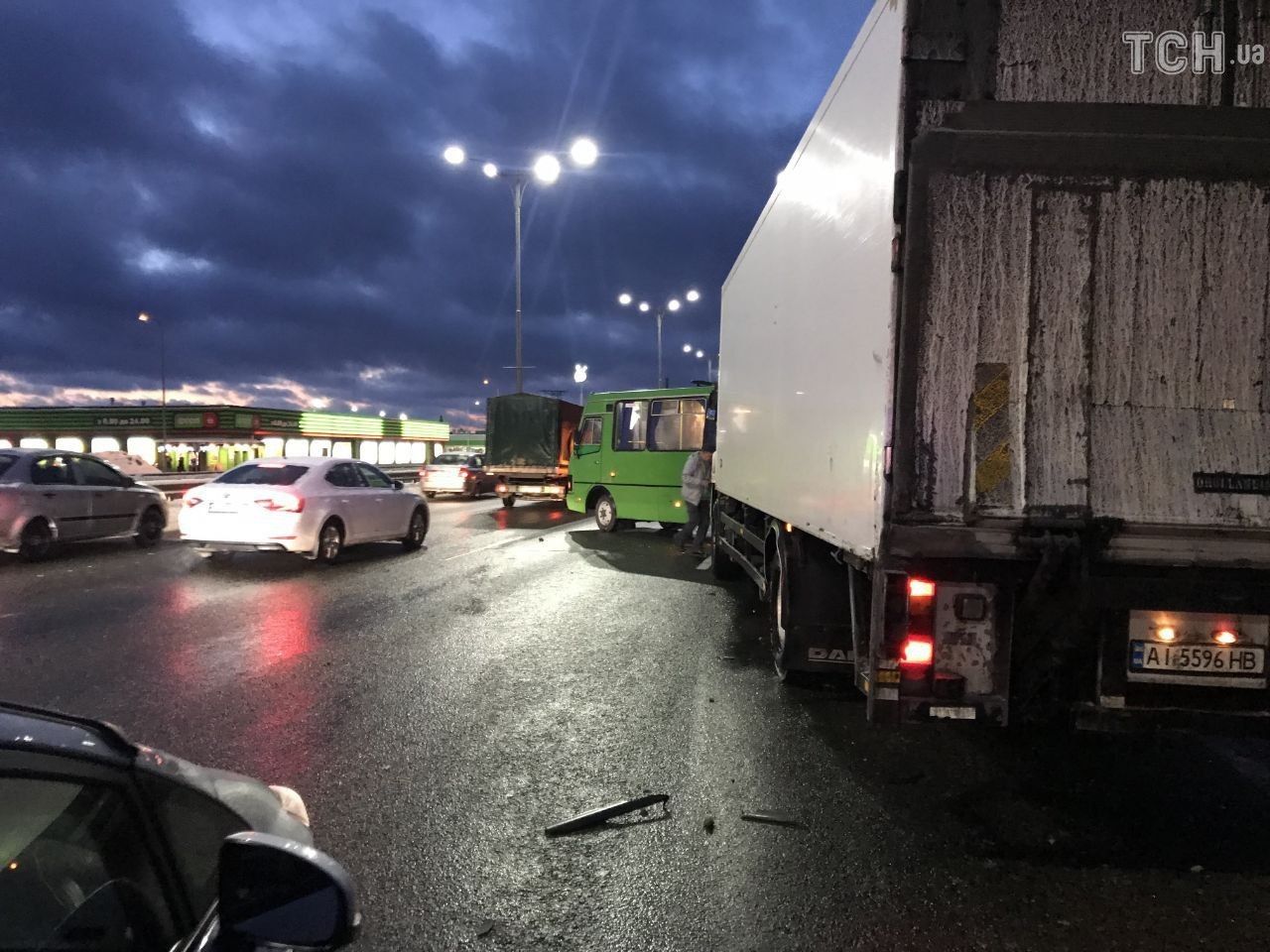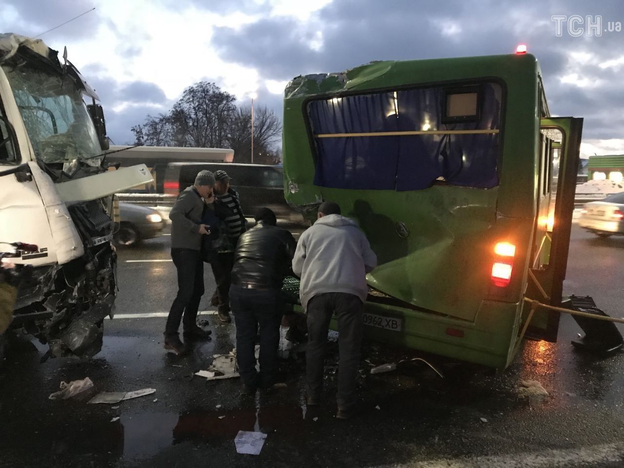 Под Киевом на Бориспольской трассе грузовик въехал в заполненную пассажирами маршрутку.