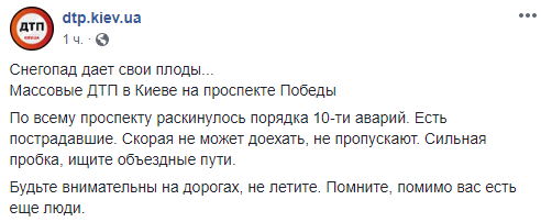 Десятки дорожно-транспортных происшествийпроизошли в Киеве одновременно из-за резкого ухудшения погодных условий. Об этом сообщает Dtp.kiev.ua на своей странице в Facebook.