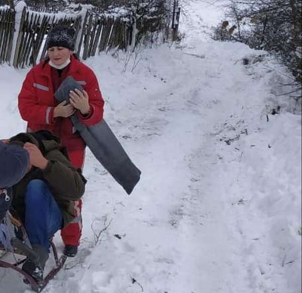 Под Харьковом медикам пришлось на санках везти пациента к «скорой»