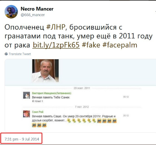 Как указал блогер, не правдивую информацию распространяли еще летом 2014 года. Однако постить ее не перестают до сих пор. Кроме этого Necro Mancer отметил, что мужчина на фото умер от рака еще в 2011 году.
