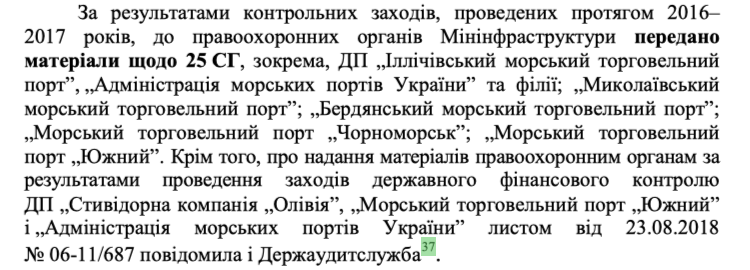 В частности, последний отчет Счетной палаты Украины: