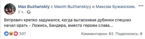 «Так же как президент в выступлении на годовщину СБУ, помните, оговорился, «циничные бандеровцы» сказал, а имел в виду «бандиты». Здесь тоже, видимо так». — написал он.