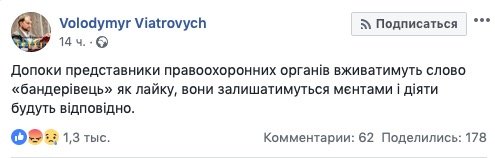 Владимир Вятрович отметил, что пока представители правоохранительных органов будут употреблять слово «бандеровец» как ругательство, они будут оставаться ментами и действовать будут соответственно.